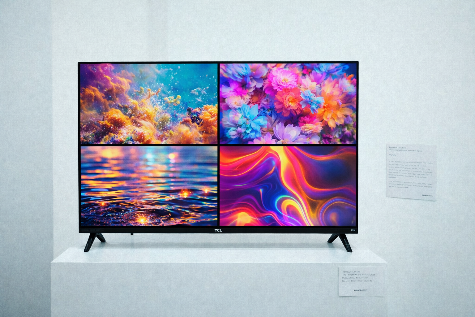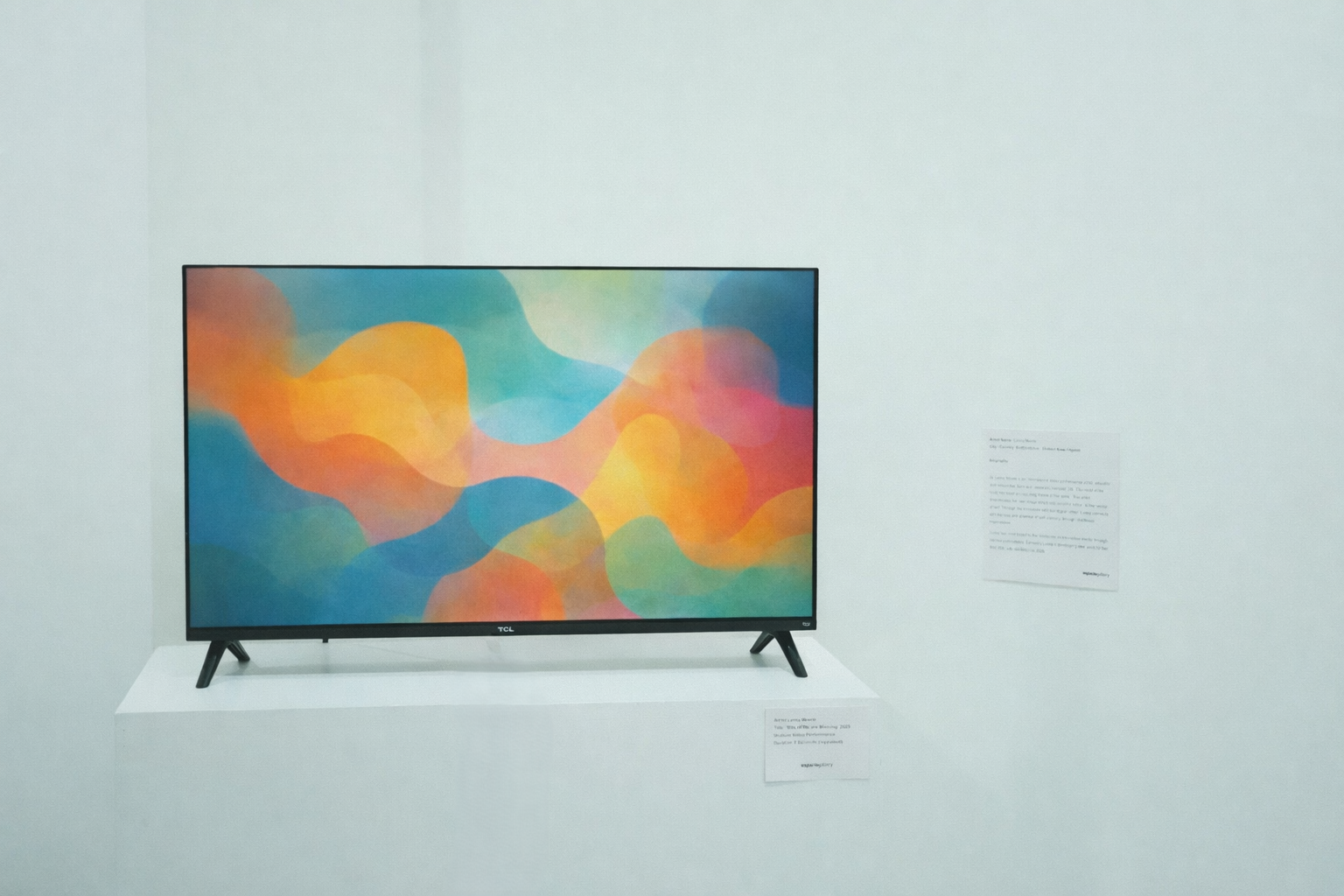 Each selected video artwork is presented on a 50 inch Samsung The Frame screen, a high quality display specifically designed for the presentation of art. The screen offers high resolution image clarity, balanced colour rendering and a matte, anti reflective surface that significantly reduces light glare. This ensures that digital artworks are viewed clearly and comfortably within the gallery environment, even under natural and exhibition lighting conditions.