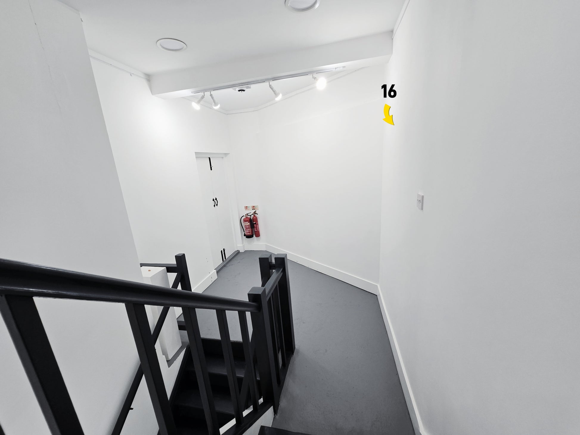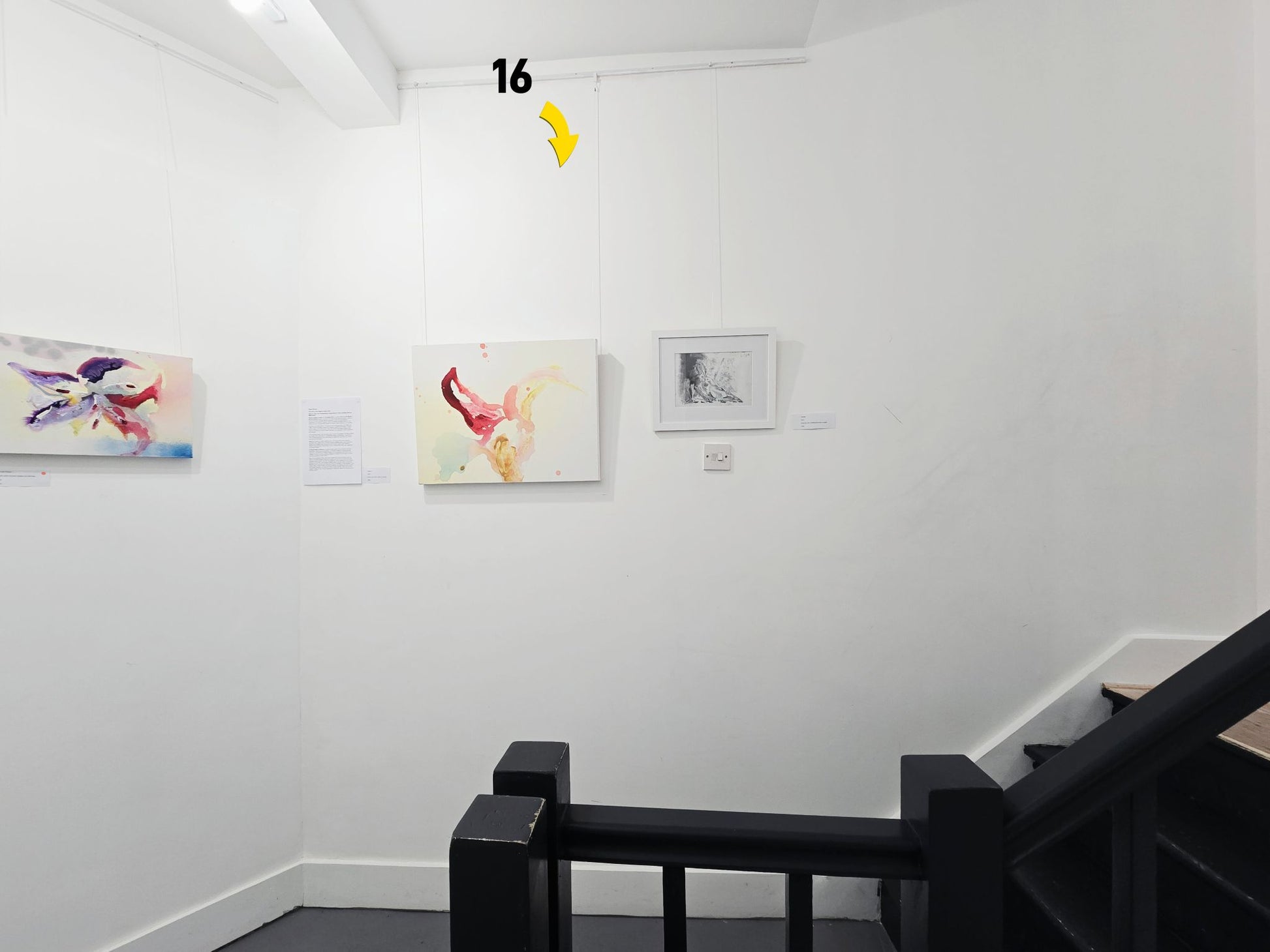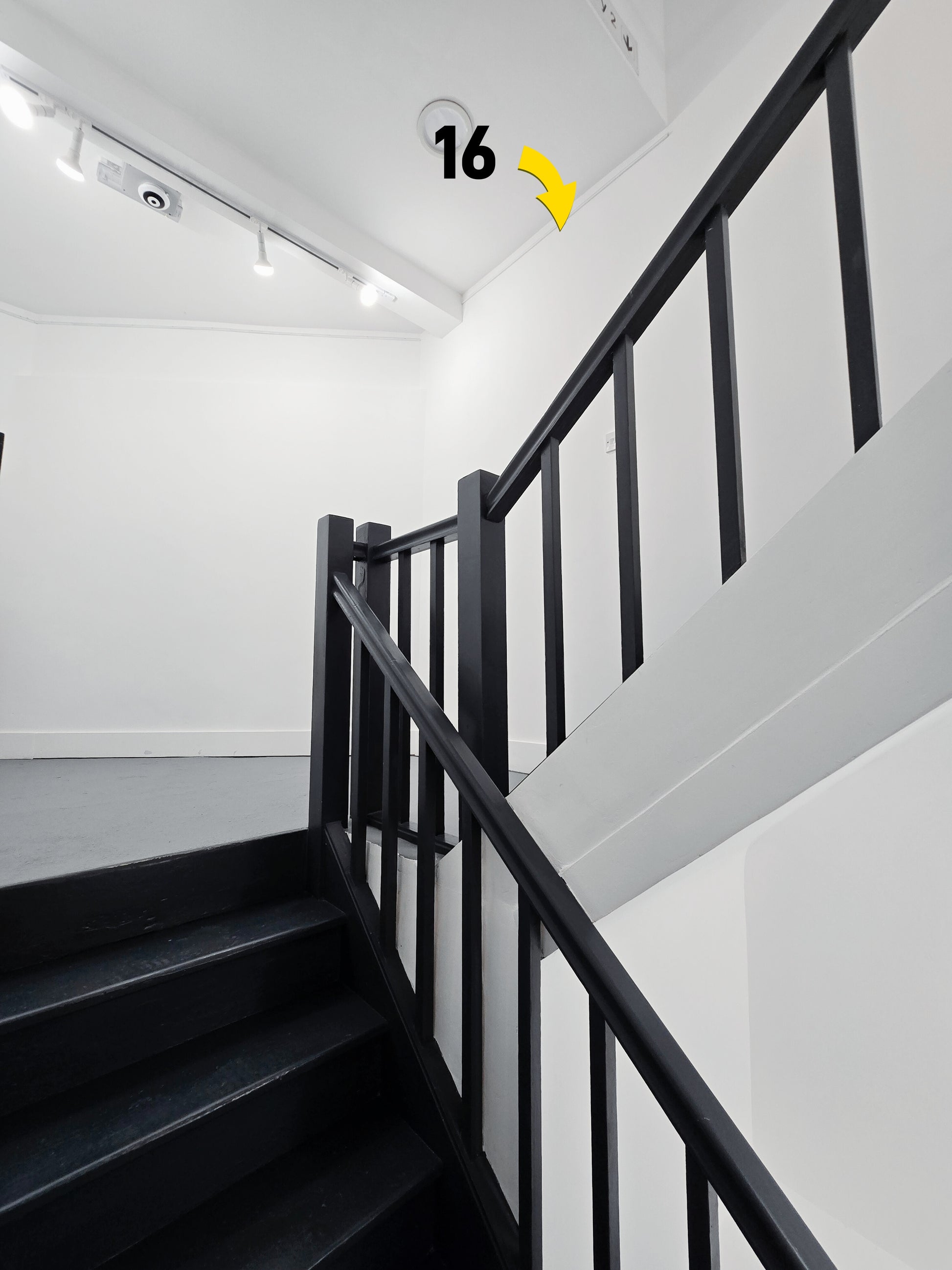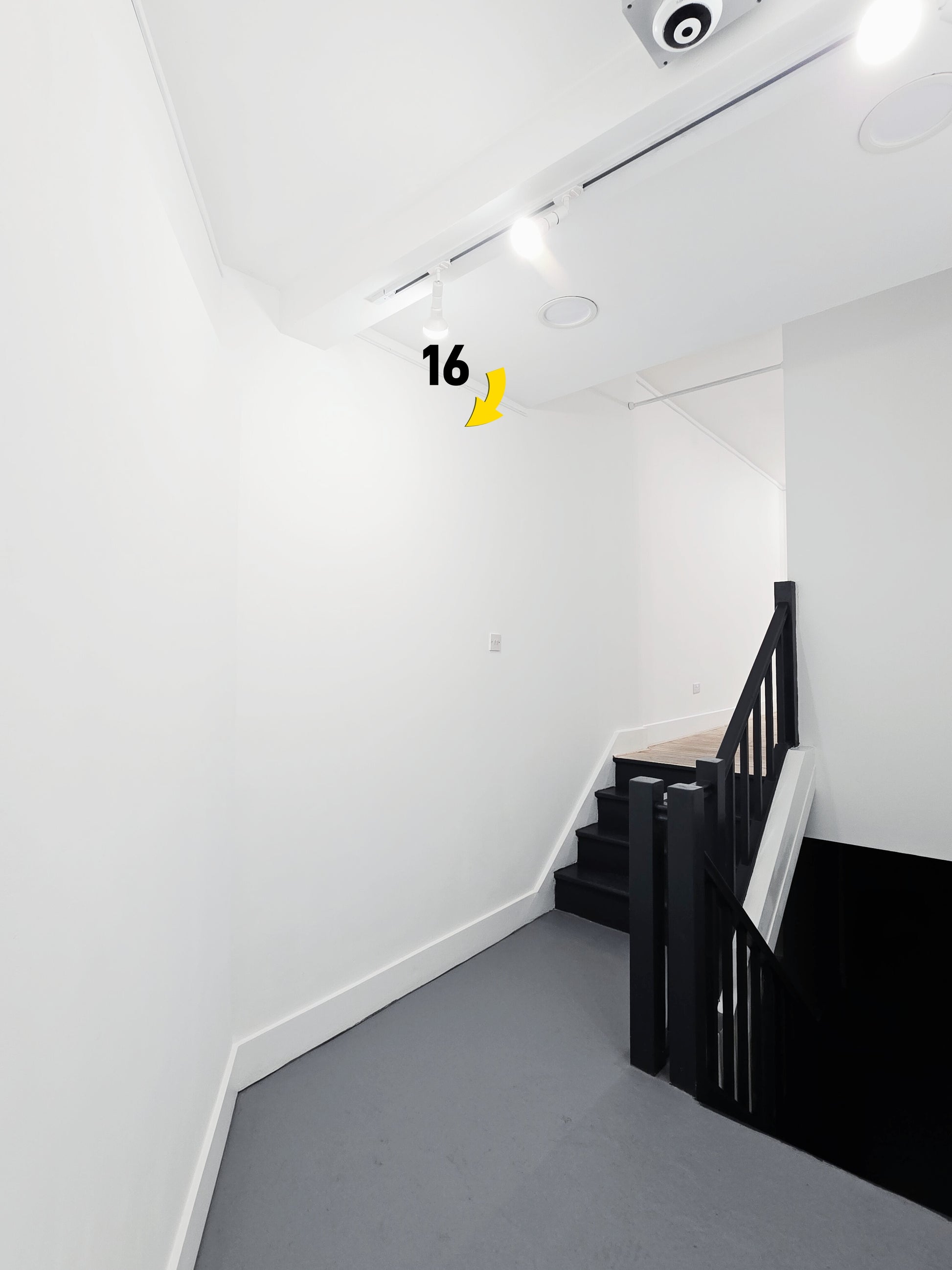 A slender 60 cm vertical section in the stairwell transition. Ideal for works that reveal themselves through movement and ascent.