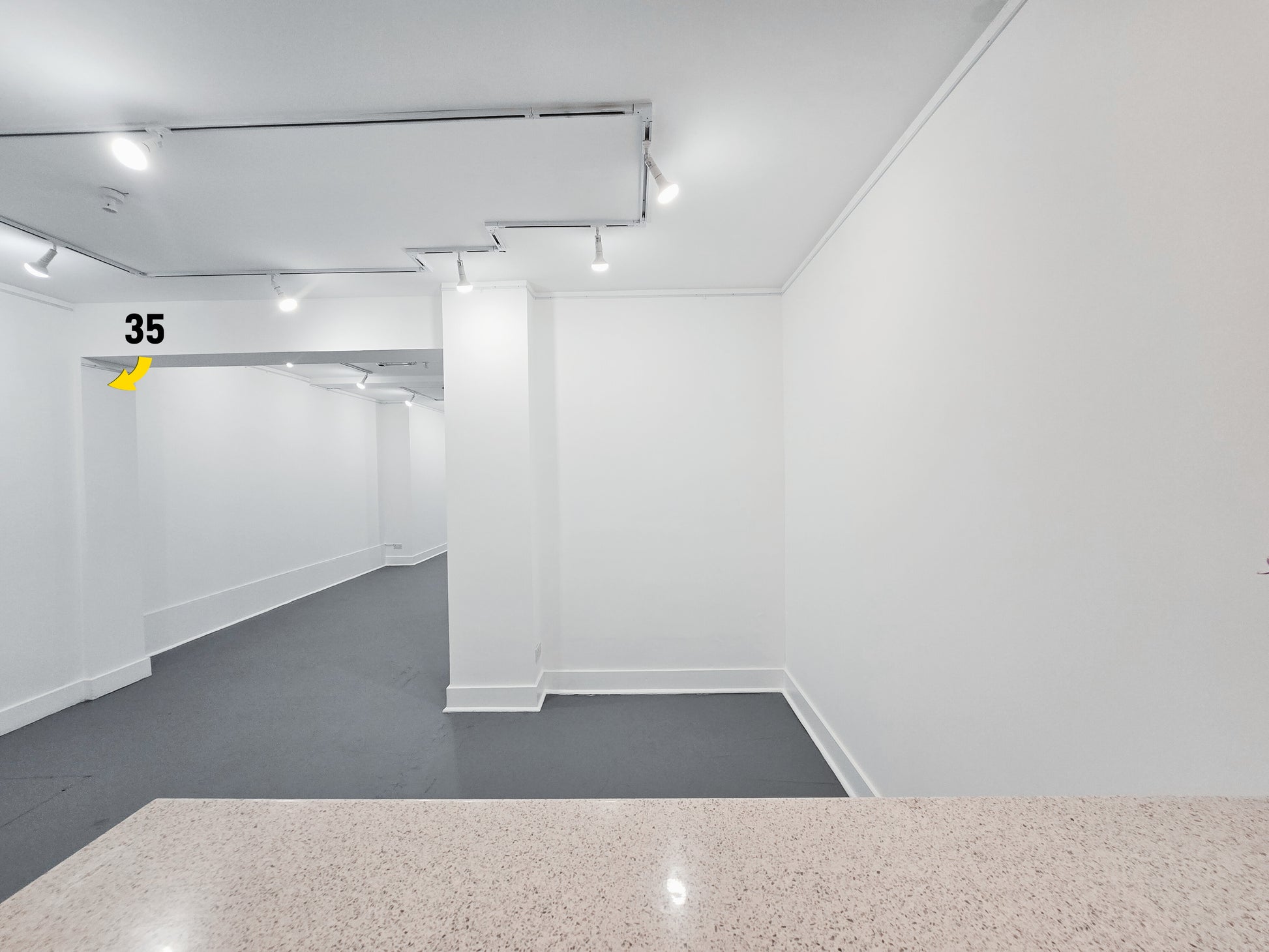 A slender 40 cm vertical column in a transitional area. Ideal for small but striking works with focused artistic clarity.